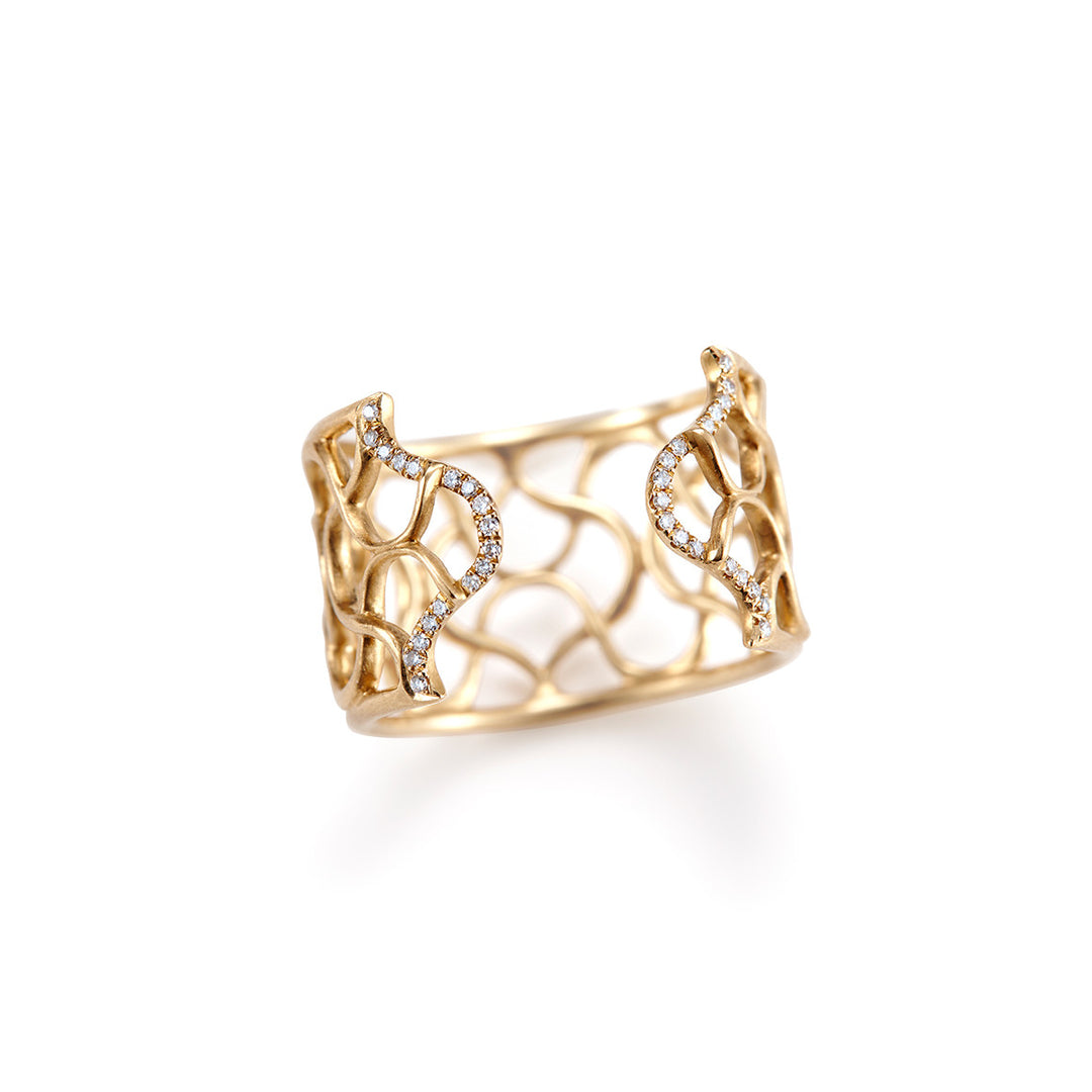 The Artemisia line, Anahita’s classic collection, draws inspiration from Ana’s love of sculpture, architecture, and the Art Nouveau style. Named after the queen of ancient Persia, the Artemisia collection features fluid shapes, repeating patterns, and signature motifs such as the “Ani” (Ana’s nickname) arabesque and “Elli” (Ana’s daughter’s nickname) eye shape. Pieces such as the Tearcup Amulet necklace and Lovebird Locket are celebrated designs in the Anahita jewelry line and have unique historical inspiration.