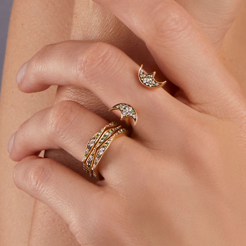 Named after the Greek word meaning “gift from the stars,” the Astara collection is inspired by celestial elements. Diamond-encrusted crescent motifs and orbs of grey Tahitian pearls and rare African moonstones pay homage to the moon and starry night sky. These unique pieces make a statement yet retain the classic, effortless beauty that Anahita is known for.