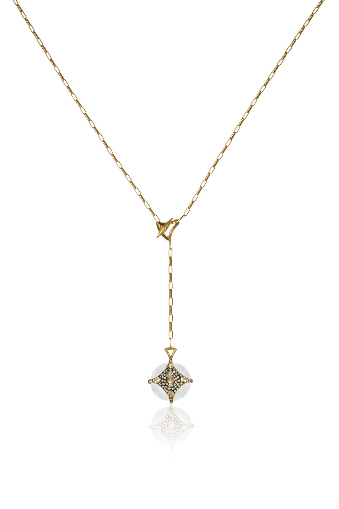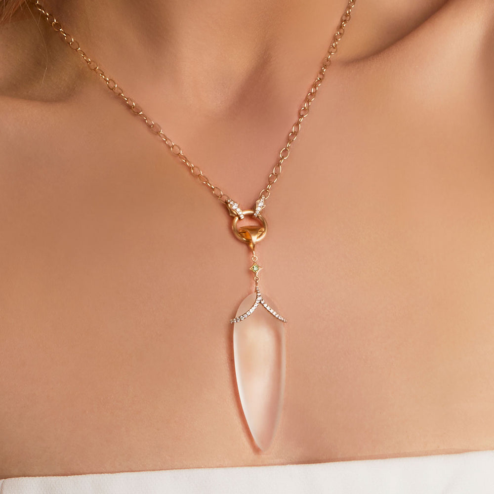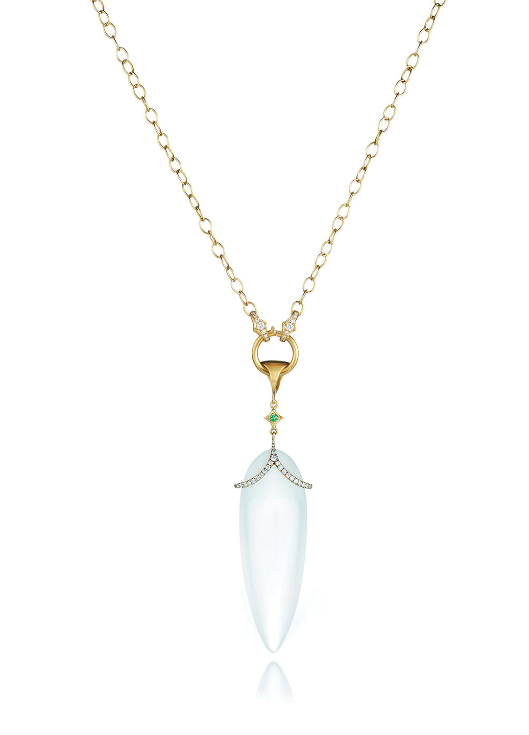 Drawing inspiration from the diverse landscape and the captivating sea ice of the Arctic Circle and its surrounding realm, the Arctic Medallion collection's design is a tribute to the frozen, otherworldly beauty of this region. Infusing elements of frosted topaz, rainbow moonstone, and white diamonds, This harmonious blend of materials and colors creates a luminous, ethereal composition, evoking a profound and understated elegance.
